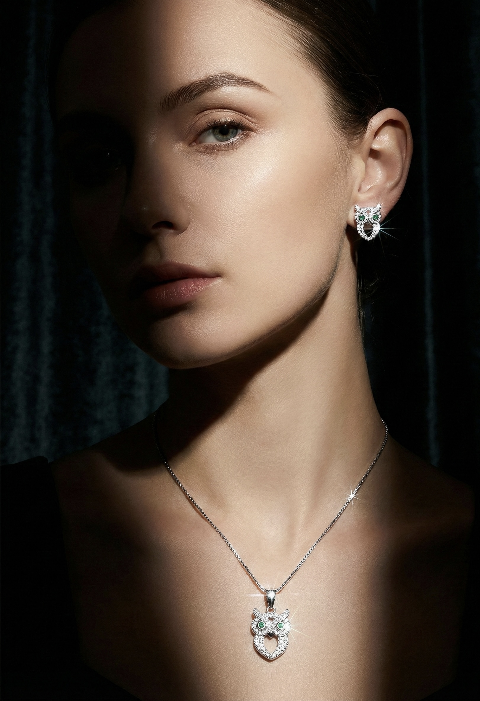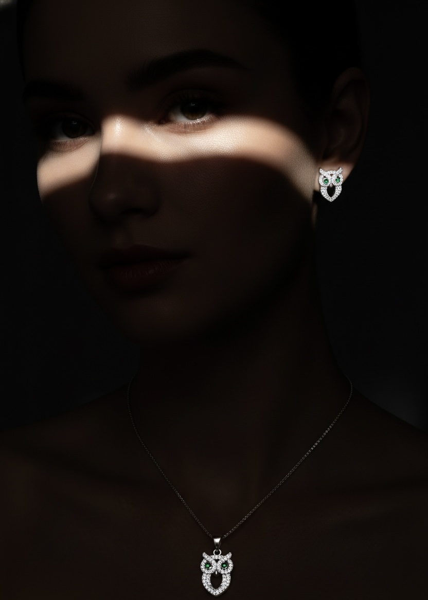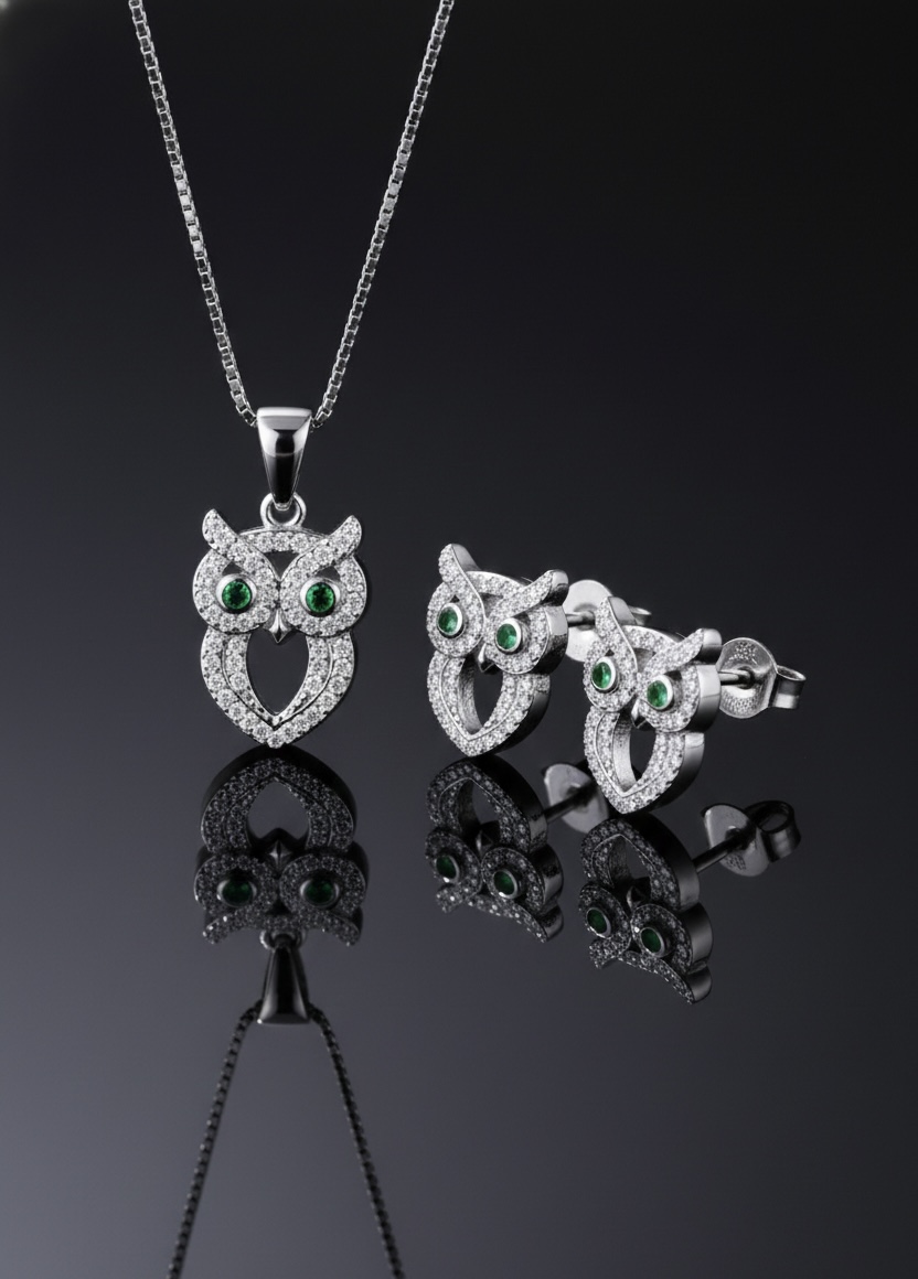 Elevate your elegance with this beautifully crafted 92.5 Sterling Silver Owl Jewelry Set, designed with precision and charm.