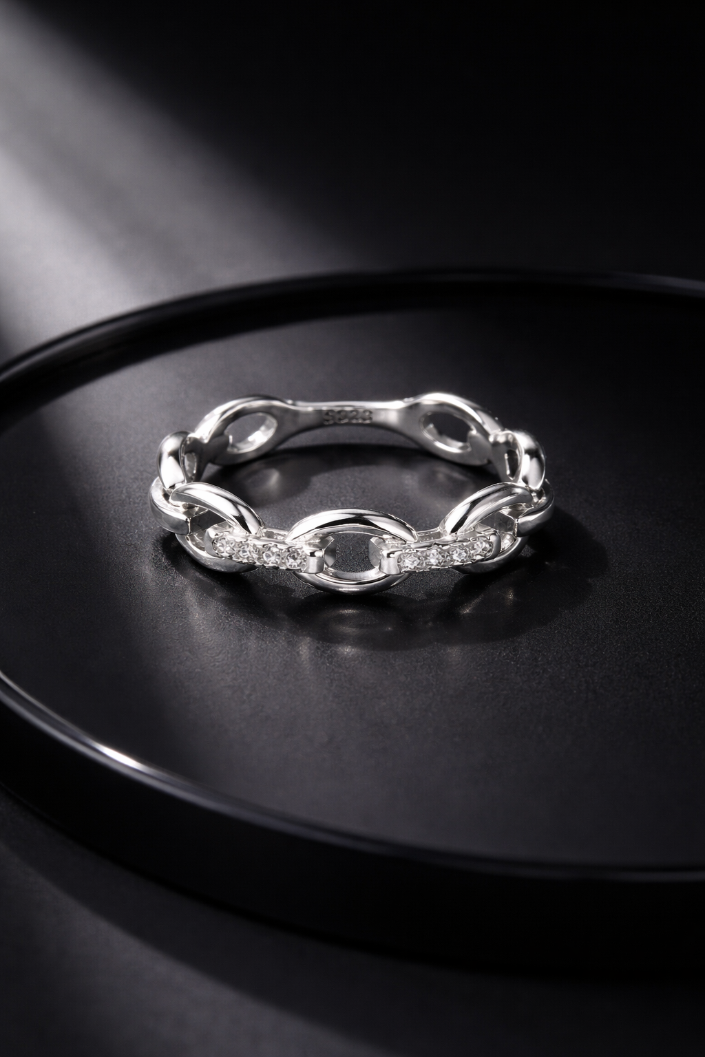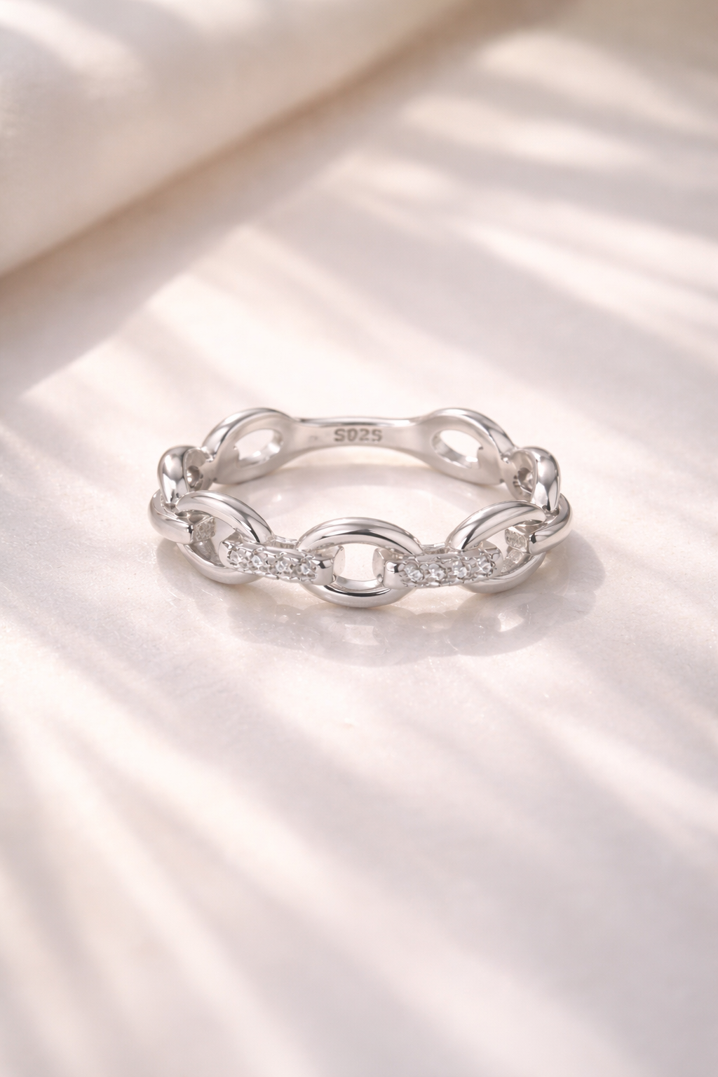 Elevate your everyday elegance with this 92.5 sterling silver linked chain ring, crafted for modern minimalists.