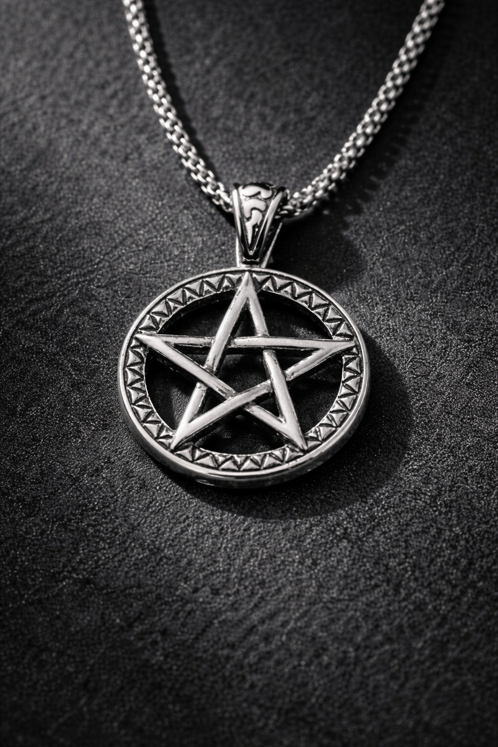 Channel strength, protection, and timeless symbolism with the Silver Guardian Pentagram Necklace. Crafted in premium stainless steel, this pendant features a bold five-point star framed inside a detailed circular border with geometric accents—creating a powerful and visually striking piece.