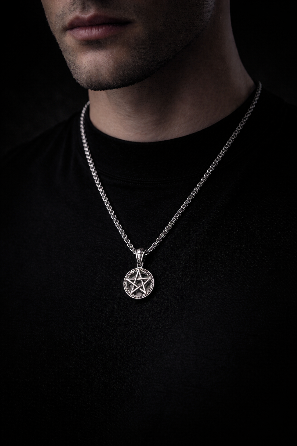 Designed with a heavy, masculine chain for durability and presence, the pendant delivers a clean, polished look with intricate detailing that reflects expert craftsmanship. The pentagram has long been seen as a symbol of balance, guidance, and personal protection, making this necklace not just an accessory but a meaningful statement.