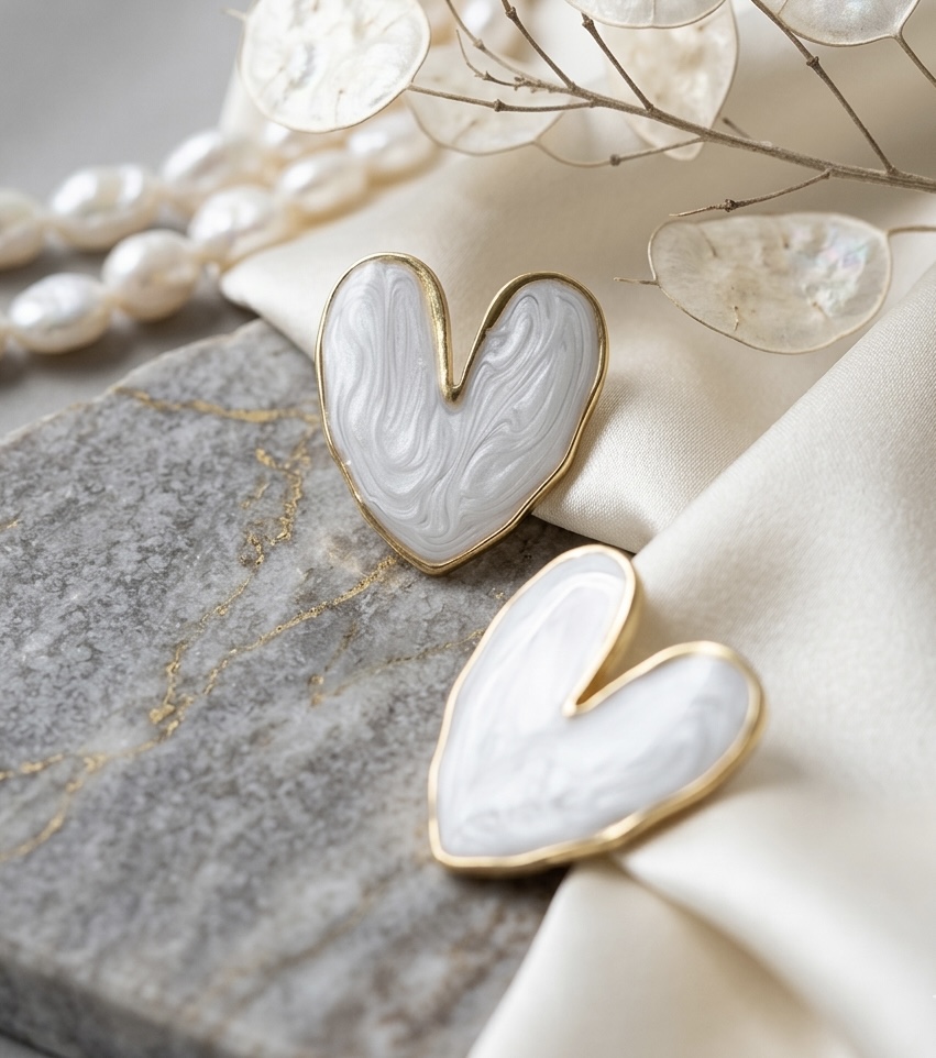 The soft white tone gives a clean and luxurious look, while the heart shape symbolizes love and elegance. These white heart earrings are lightweight and comfortable, making them ideal for daily wear, office looks, casual outfits, and special occasions.