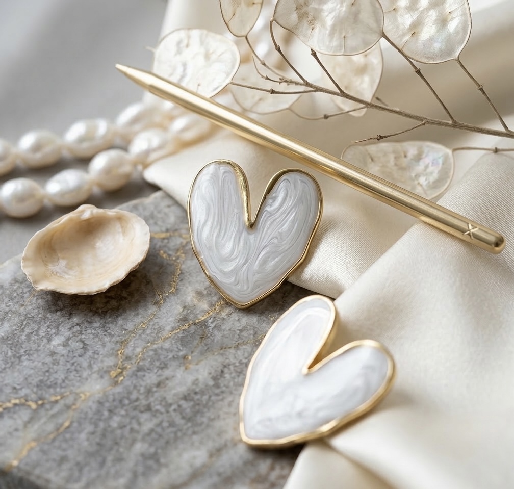 Be the first to review “White Heart Stud Earrings – Gold Plated Minimalist Marble Heart Earrings for Women | Pavani Studio”